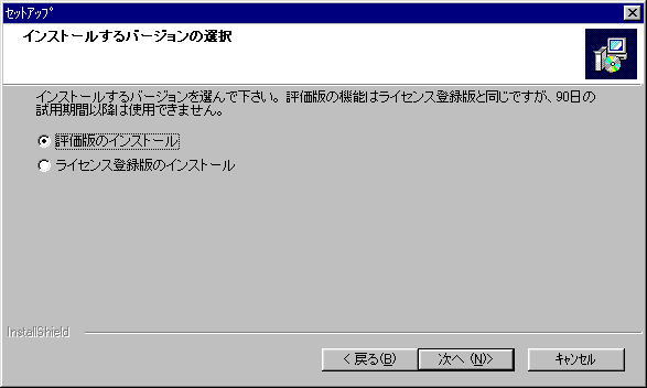 4.評価版のインストールを選択して【次へ】ボタン押下
