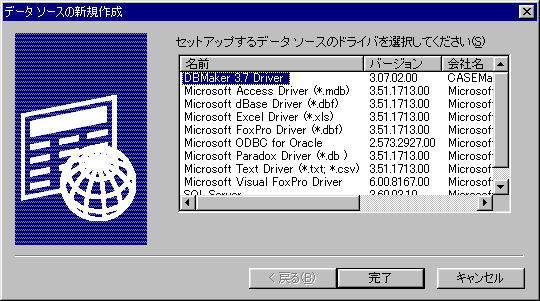 3.DBMaker 3.7 Driver を選択して【完了】ボタン押下