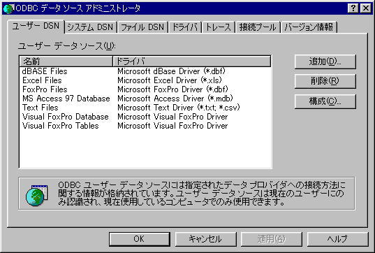 1.コントロールパネルから「ODBCデータソース(32ビット)」を選択する(クリックする)。