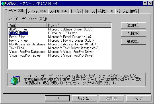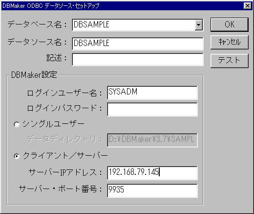 DBMakerをインストールした時点で、サンプルデータベースもインストールされています。その情報をセットします。