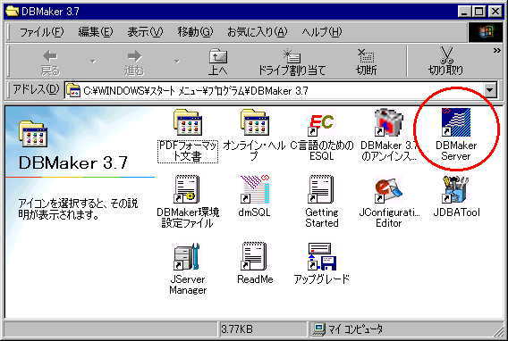 1.スタートメニューの「DBMaker 3.7」から「DBMaker Server」を選択する。